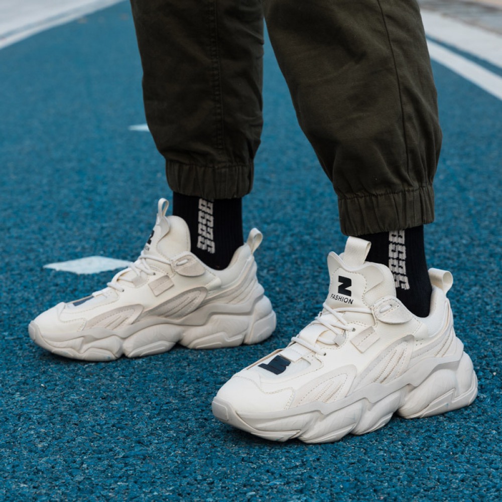 Men's New Breathable And Versatile White Casual Board Shoes Thick Soled Sports Shoes
