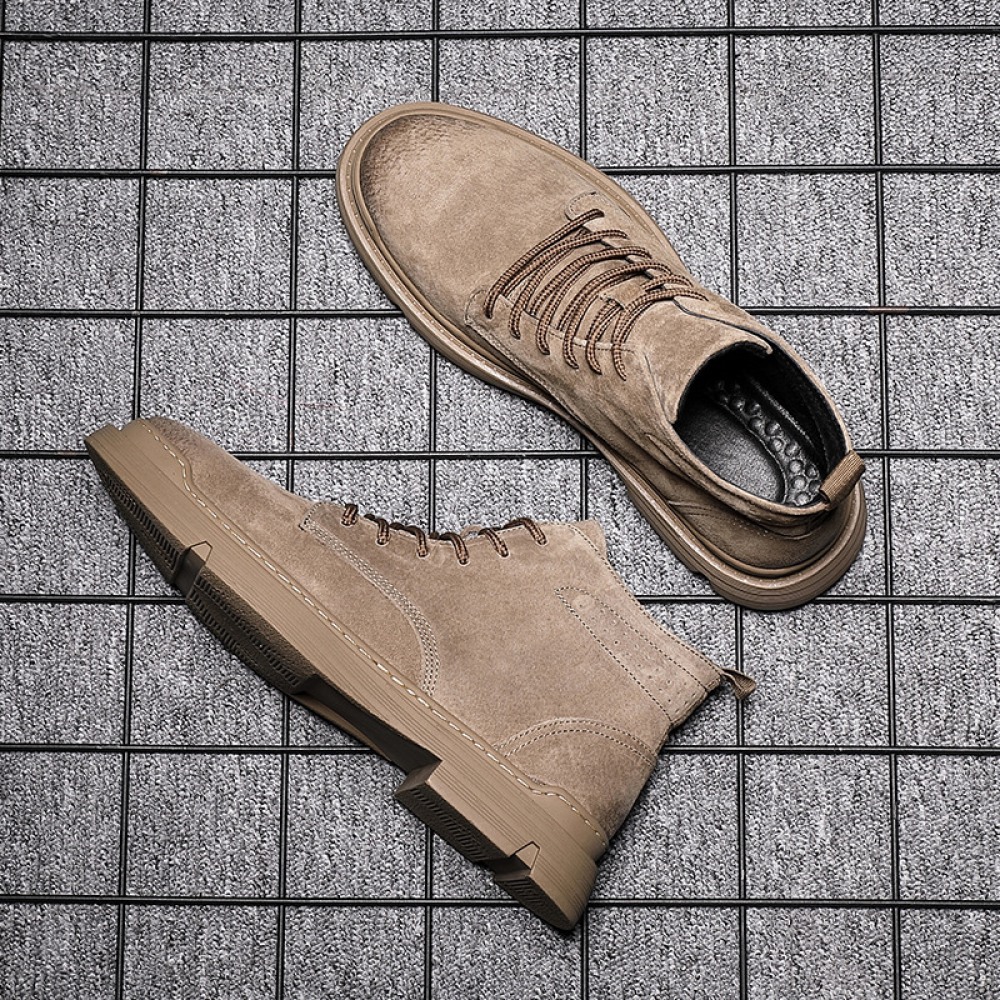 Autumn New Leather Men's Leather Boots Front Lace-Up Low-Heel Martin Boots Mens Shoes