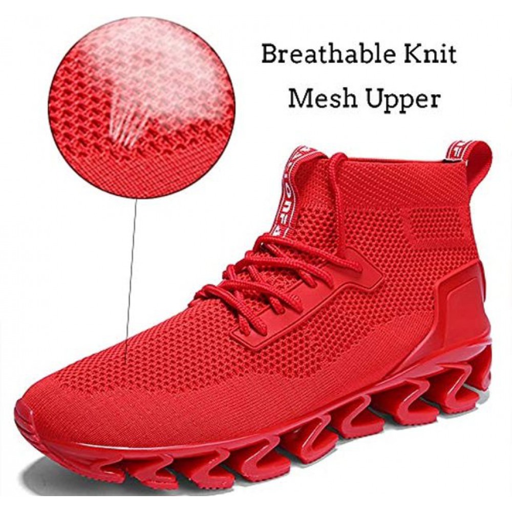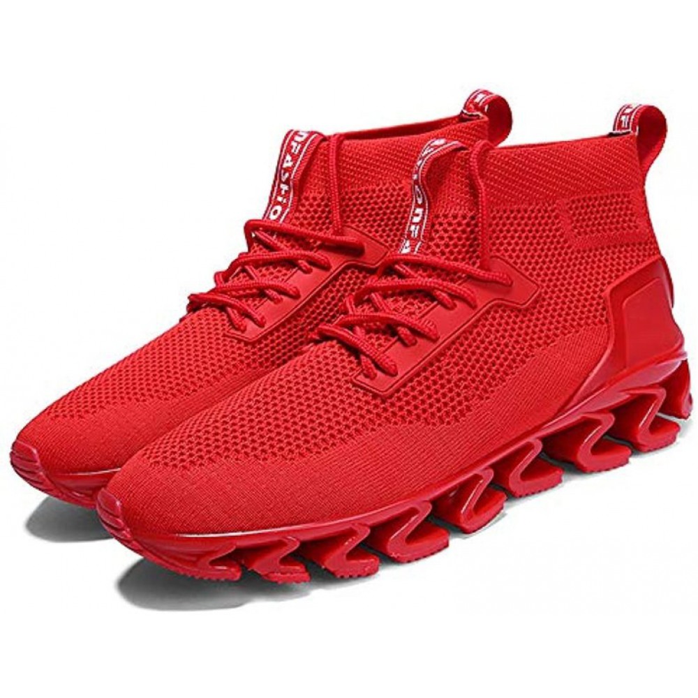 Womens Walking Shoes Mens Slip-On Sneakers Breathable Lightweight Athletic Running Shoes High Top Red