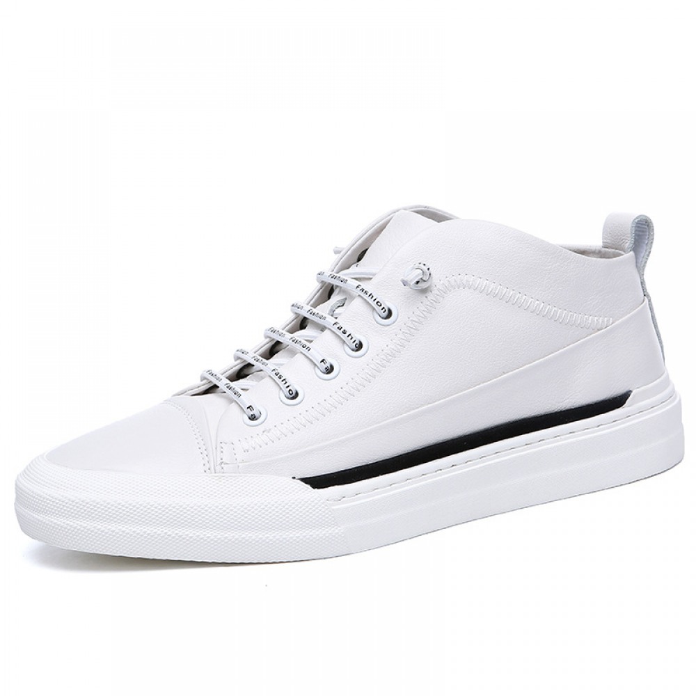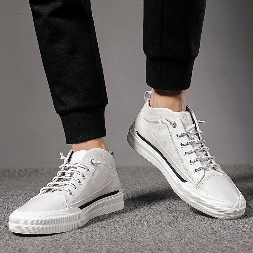 Men's Leather Board Shoes Trendy White Casual Shoes