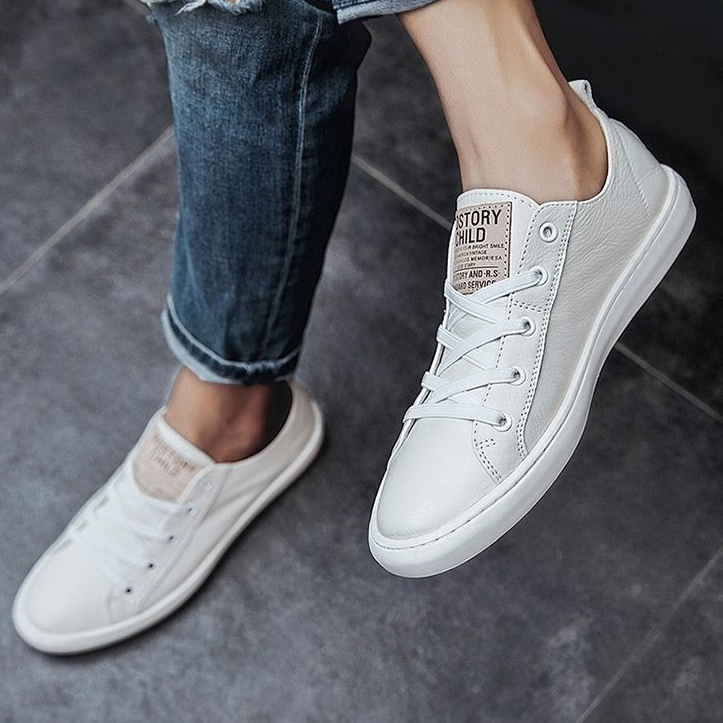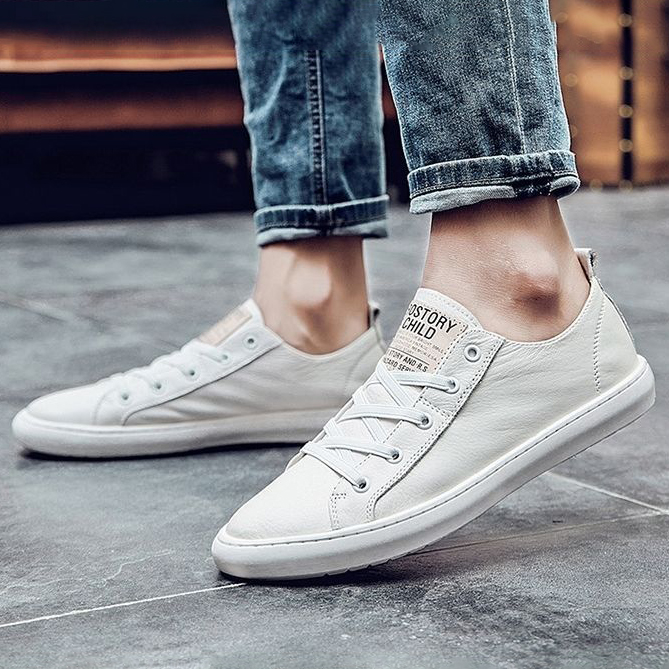 Men's Soft Leather White Casual Shoes All-Match Sneakers