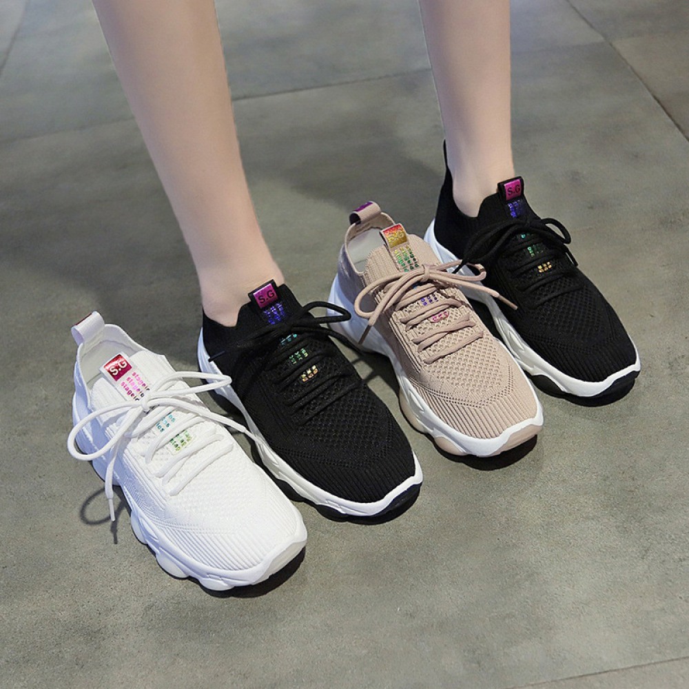 Summer New Simple Breathable Casual Net Shoes Women Flying Knitting Shoes