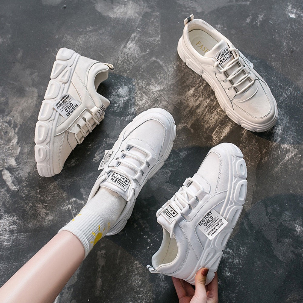 White Shoes Female Spring New Student Running Board Shoes Female Increased Sports Casual Shoes Laces