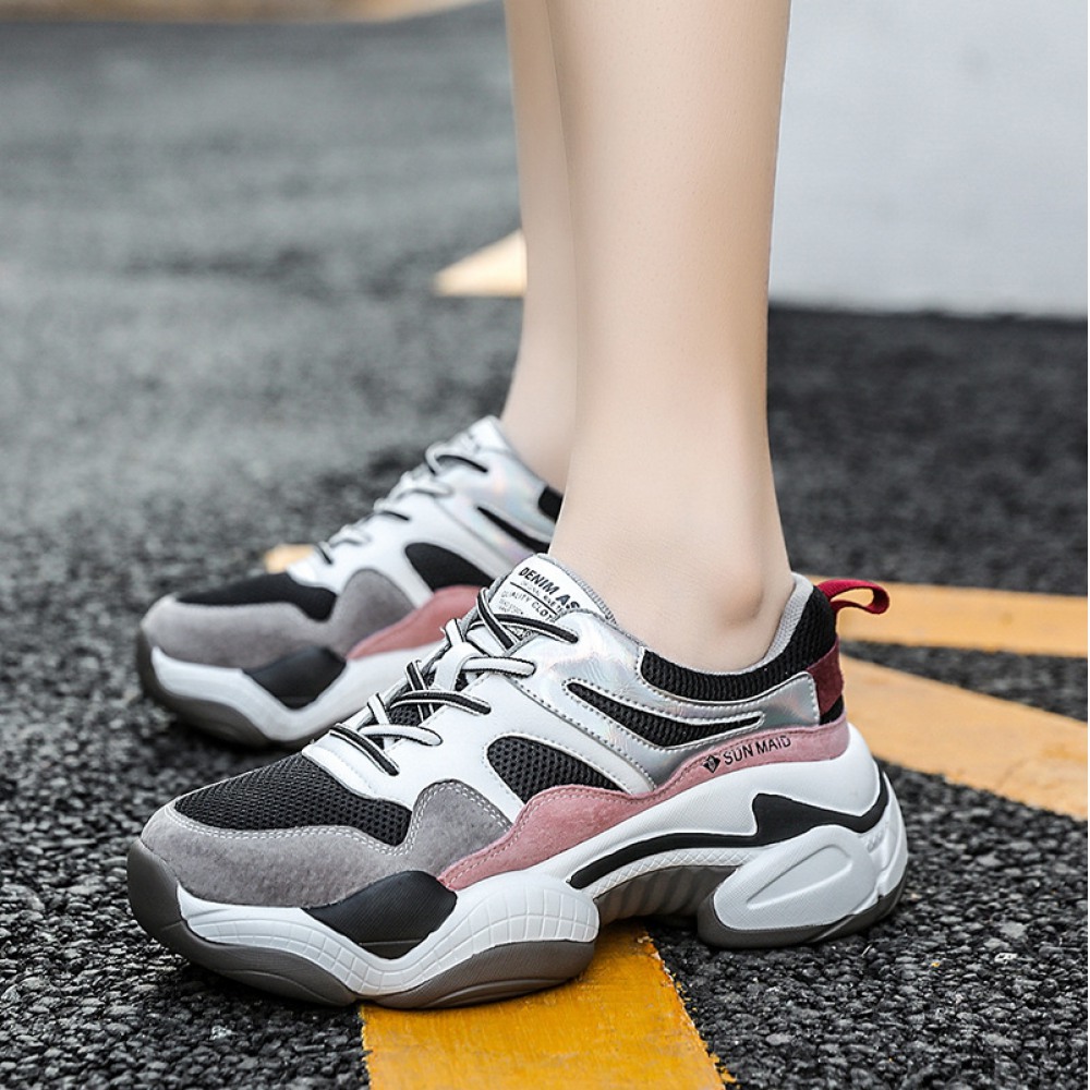 Women's Autumn Mesh Trendy Shoes Reflective Thick-Soled Increased Casual Sports Women's Shoes